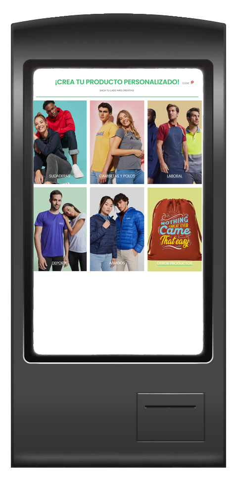¿COMO REALIZAR UN PEDIDO? 1. ESCOGE LA CATEGORÍA DESEADAEscoge entre las diferentes categorias disponibles y haz click encima de la deseada.SUDADERAS:CAMISETAS Y POLOS:LABORAL:DEPORTE:ABRIGOS:OTROS: 2. SELECCIONA EL MODELO PARA PERSONALIZARSelecciona el modelo de prenda que deseas personalizar, dentro del producto podrás ver los diferentes colores disponibles.